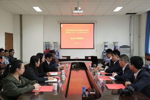 学院与陕西建工第十二公司建设有限公司签署《校企合作协议书》,并进行了“学生就业实习基地”和“实践教学基地”授牌仪式。会后,校友尚国亮为在校毕业生做了以“为建筑远航,向未来挑战”校友报告会,学生反响热烈。