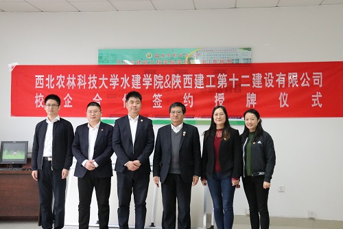 为进一步加强院企沟通交流,实现资源双向互通,共同培育水利与建筑行业精英,近日,学院与陕西建工第十二建设有限公司举行校企合作签约授牌仪式。陕西建工第十二建设有限公司纪委书记佀伟、投资项目管理公司经理尚国亮、纪检监察审计部部长李延坤、人力资源部招聘主管周旭及学院领导参加签约仪式。其中尚国亮为我校校友即91直播 土木专业2009届本科毕业生。