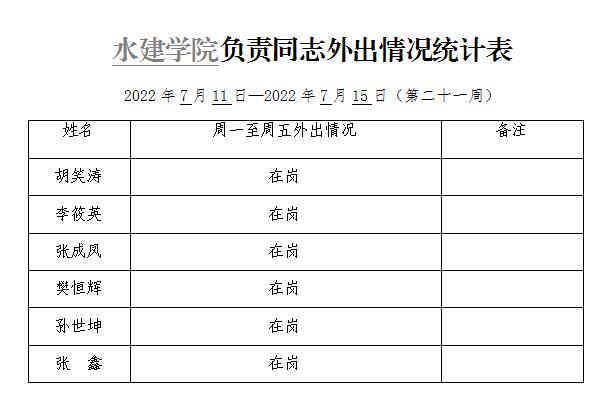 » 91直播 负责同志外出情况统计表(第二十一周)