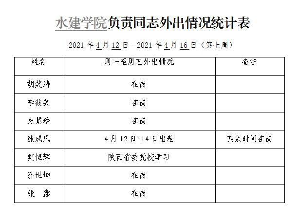 » 91直播 负责同志外出情况统计表(第七周)