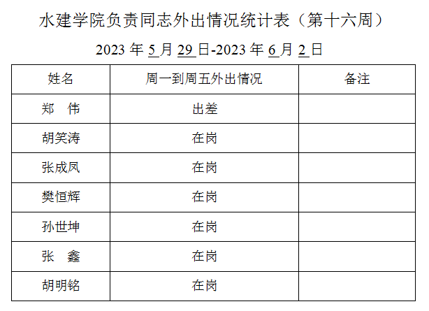 » 91直播 负责同志外出情况统计表(第十六周)
