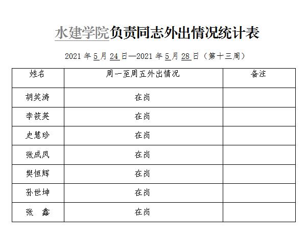 » 91直播 负责同志外出情况统计表(第十三周)