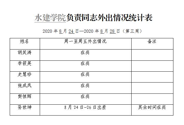 » 91直播 负责同志外出情况统计表(第三周)