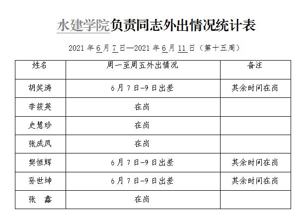 » 91直播 负责同志外出情况统计表(第十五周)