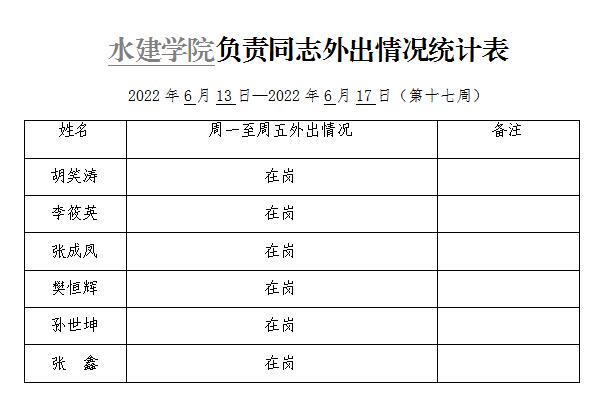 » 91直播 负责同志外出情况统计表(第十七周)