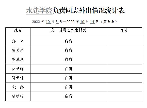 » 91直播 负责同志外出情况统计表(第五周)