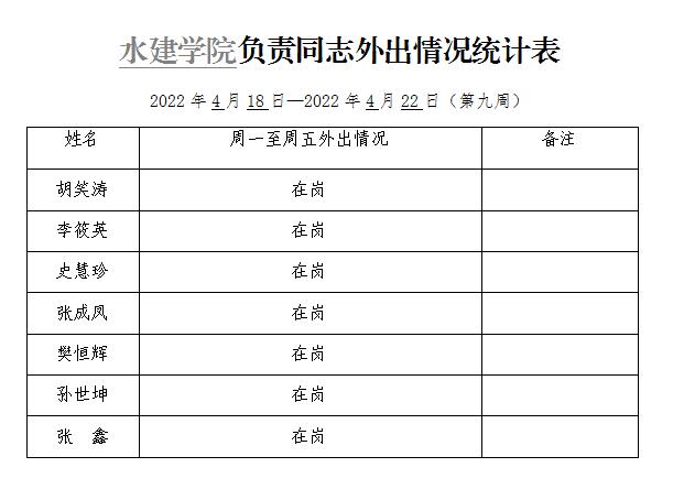 » 91直播 负责同志外出情况统计表(第九周)