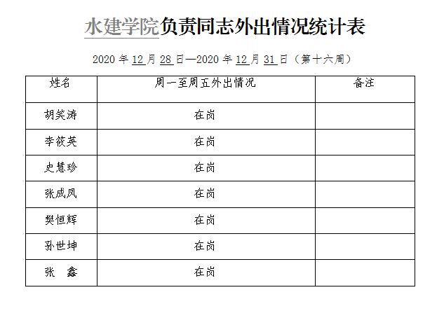 » 91直播 负责同志外出情况统计表(第十六周)