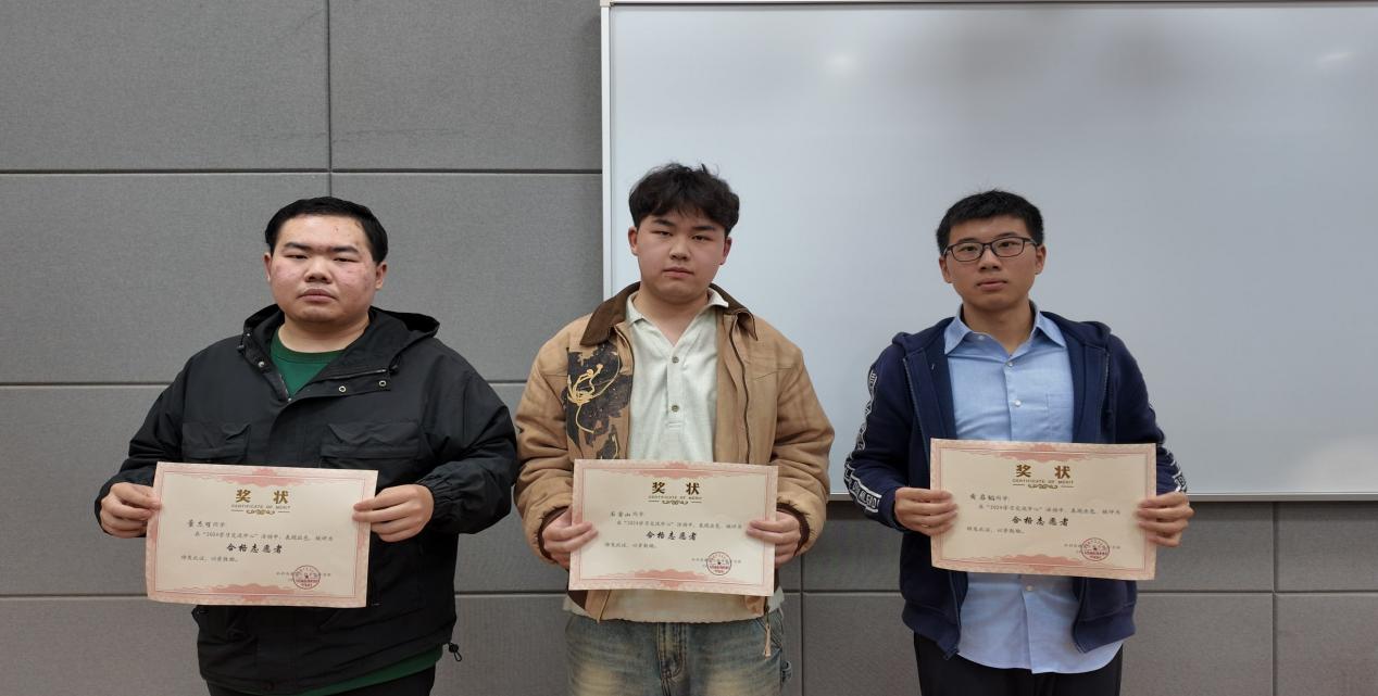 活动的最后,学习部对这三位同学提出表彰并颁发奖状,感谢他们在2024学习交流中心活动中做出的伟大贡献,并宣告了2025学习交流中心活动的正式启动。