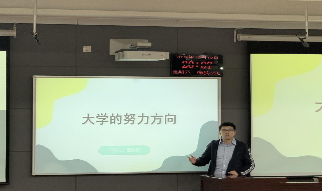 活动伊始,矫开智学长深入浅出地为同学们讲解了活动内容和重要意义。接下来,23级的董杰可、黄启韬和石金山同学轮番上台为新生们分享学习经验,并为同学们答疑解惑,从课程组成到学习方法,从努力方向到未来选择,从专业学习到学术发展,三位同学用朴实易懂和幽默风趣的语言,以亲身经历与自身经验为同学们讲述大学学习的方方面面,给出自己的建议,让同学们深受启发。