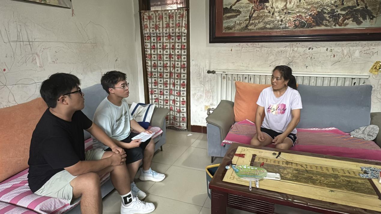 图为队员采访村民,了解赤岸村的历史