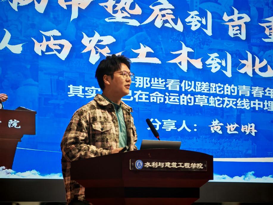 黄世明以“从年级垫底到保研北大”的逆袭经历激励在场同学。面对理论力学、弹性力学等难度较高的专业课程,他和大家共同交流学习方法。他强调,大学阶段要善于把握机会,时刻保持“准备着”的状态,才能在机遇来临时稳稳抓住。