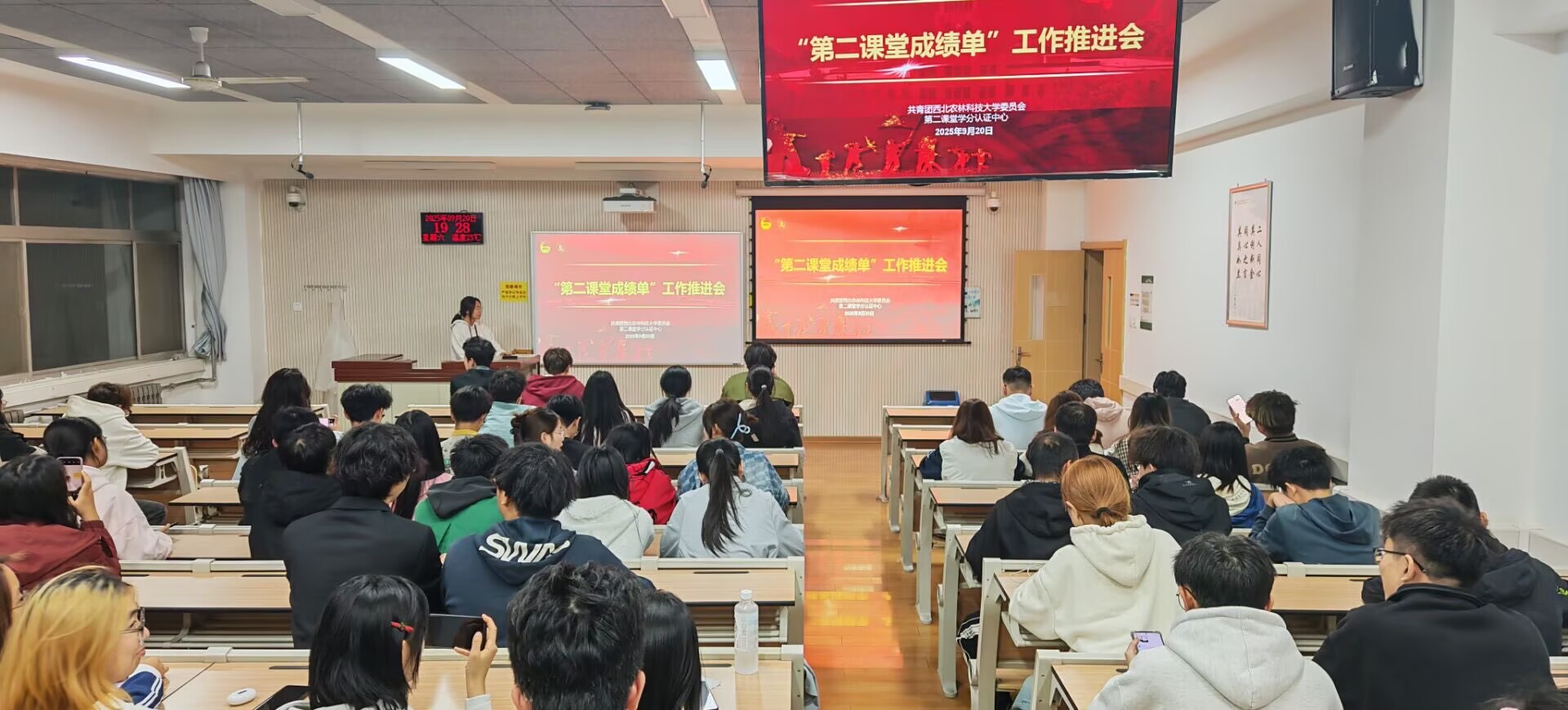首先,工作人员对“第二课堂成绩单制度”进行了解读,即通过直观的可视化图表,展示了“第二课堂成绩单”20个总学分的具体构成。之后,工作人员针对“如何高效参与”问题,对登入“西北农林科技大学‘第二课堂’数智育人系统”的操作流程进行了演示。
