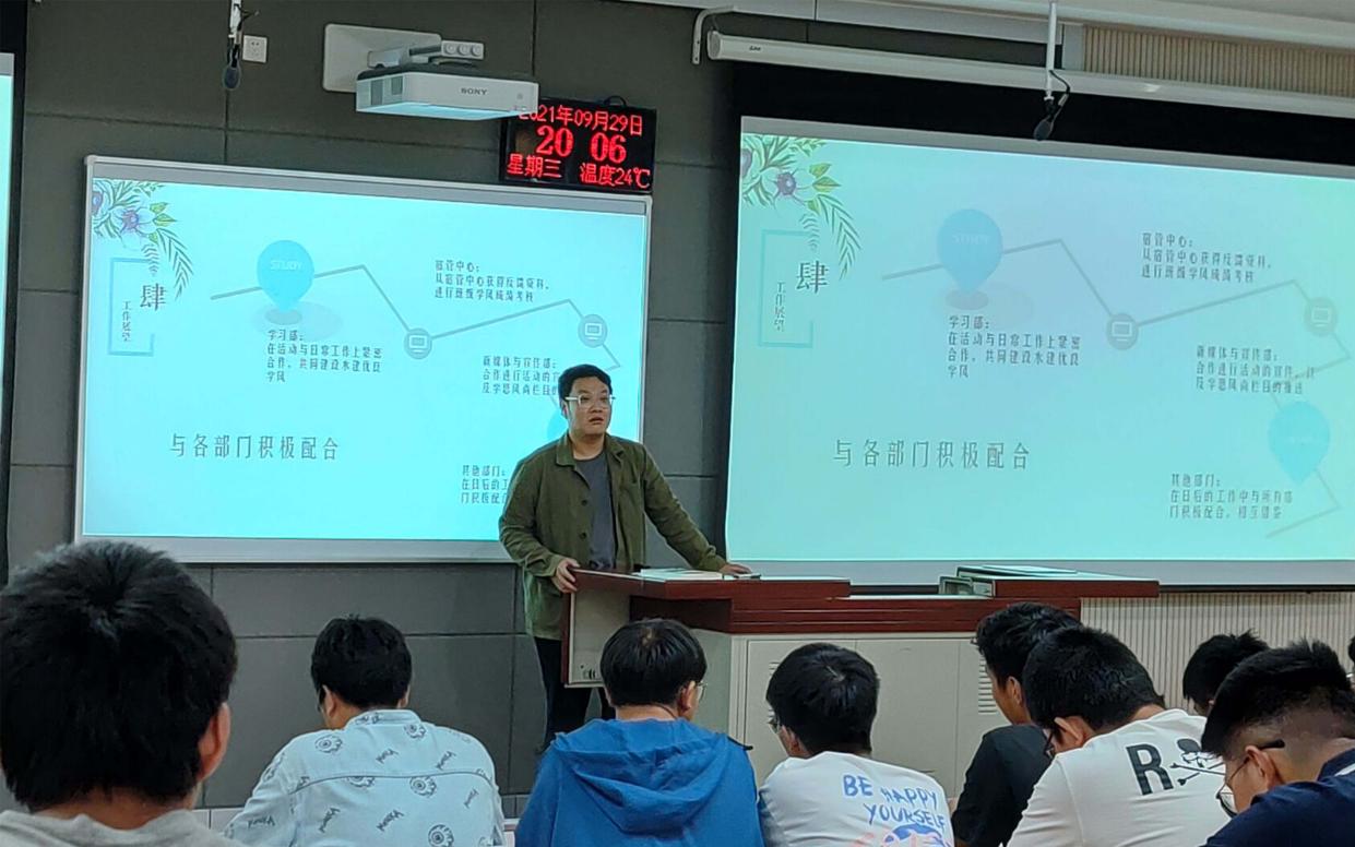 为加强本科生文明良好的学风建设,提高本科生培养质量,91直播 文明学风工作坊于9月29日晚举行了“文明学风建设会议”,20级辅导员杜传玉老师、各班班长、团支书和学习委员参会。