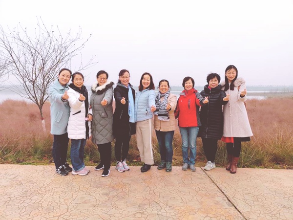 虽时值初冬,气温较低,但大家仍然兴致勃勃,一路欢声笑语。走完规定路线之后,老师们仍流连忘返,大家三五成群,有的在健身器材区跃跃欲试,有的在粉红色的“网红草丛”里欣赏徘徊,有的在木栈道上浮光掠影。