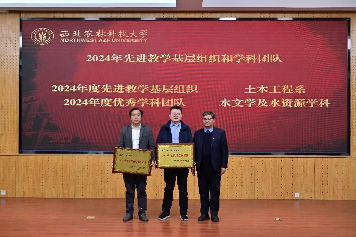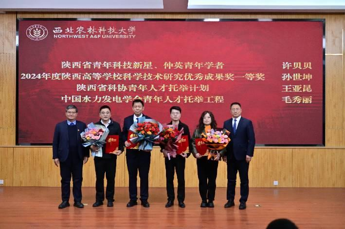 农业水利工程系主任曹红霞、水资源与环境工程系主任康艳为获奖学生代表颁奖