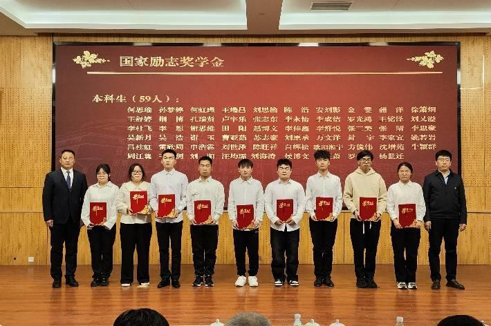 校党委学工部部长赵静、学院院长胡笑涛为获奖学生代表颁奖