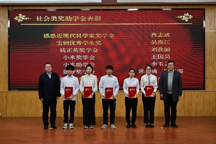 “蒙特助学金”资助企业代表、2000级农水专业校友、西安校友会水建分会副会长、陕西蒙特水利电力勘测设计有限公司总经理李大山先生、“新兴铸管奖学金”资助企业代表、新兴铸管股份有限公司西安销售分公司总经理尹海涛为获奖学生代表颁奖