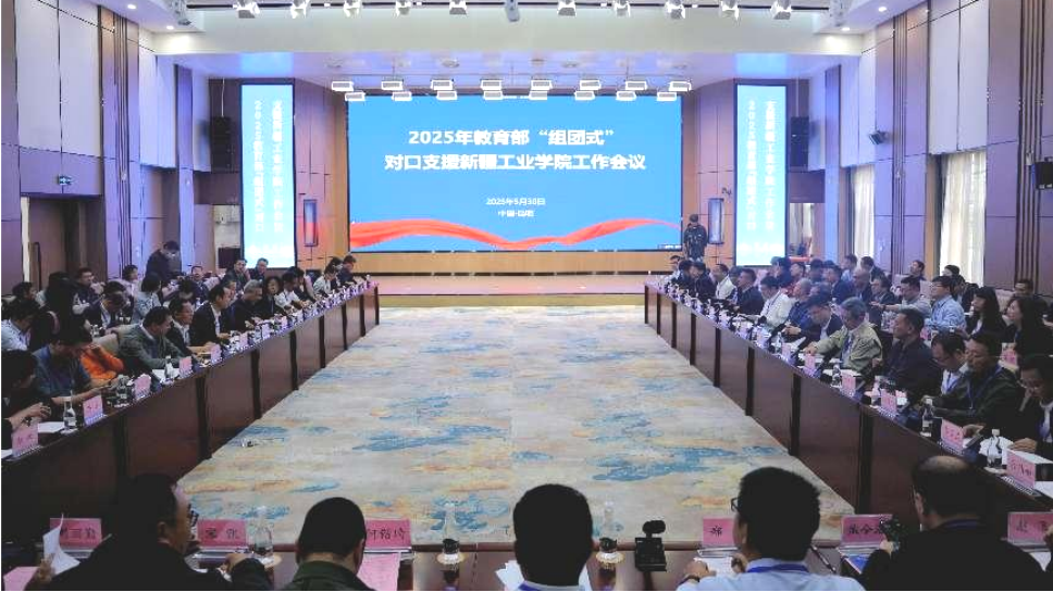 5月29日至30日,教育部“组团式”对口支援新疆工业学院工作会议在对口支援高校昆明理工大学召开。会议聚焦2025年首批招生开学教育教学保障、“组团式”支援工作机制、科研合作与交流及近期重点援建工作任务等进行深入研讨交流。新疆建设兵团教育局党组书记、局长张永安,昆明理工大学党委书记唐家华,新疆工业学院党委书记孙桂香出席会议。会议由教育部宣传教育中心副主任、新疆建设兵团教育局党组成员、副局长(援疆)蒋宏潮主持,包括我校在内的31所对口支援高校领导及有关部门负责同志参加会议。